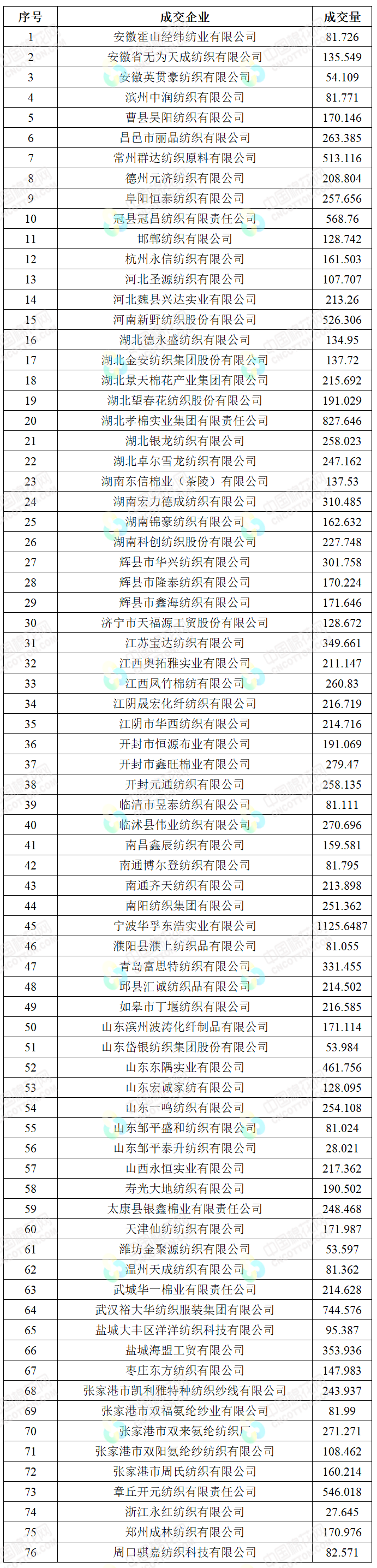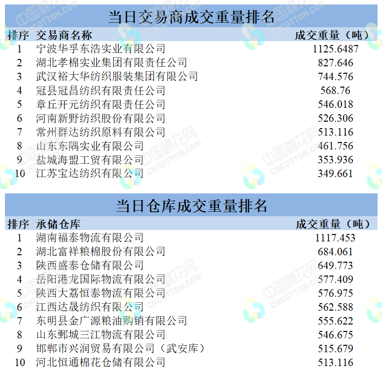 地產(chǎn)棉成交9687.505噸,成交率44.52%,成交均價(jià)14253元/噸,平均加價(jià)256元/噸,最高成交價(jià)15870元/噸,最低成交價(jià)13410元/噸;新疆棉成交7808.3617噸,成交率94.72%,成交均價(jià)15127元/噸,平均加價(jià)819元/噸,最高成交價(jià)16640元/噸,最低成交價(jià)14020元/噸。