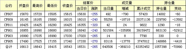 主力CF809合約當日交易走勢圖