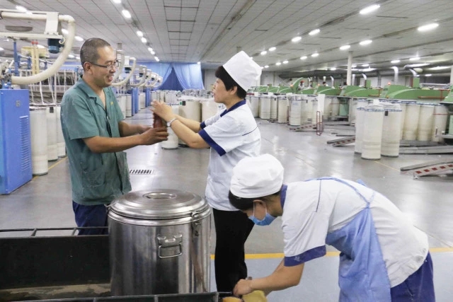 近日,石家莊持續(xù)高溫,室外氣溫躍至40℃以上。石家莊常山紡織集團(tuán)有限責(zé)任公司及時(shí)啟動(dòng)應(yīng)對(duì)方案,積極開(kāi)展送清涼活動(dòng),集團(tuán)公司落實(shí)有關(guān)規(guī)定,為員工發(fā)放高溫補(bǔ)貼。工會(huì)撥出專(zhuān)款購(gòu)置2000余斤綠豆及其他防暑物品分發(fā)給集團(tuán)所屬各企業(yè),各級(jí)領(lǐng)導(dǎo)深入生產(chǎn)一線把熬制好的綠豆湯送到員工崗位上,食堂每天免費(fèi)為員工班中餐提供綠豆湯,力保車(chē)間生產(chǎn)一線員工清爽舒適的工作環(huán)境。同時(shí),各生產(chǎn)企業(yè)工會(huì)還為每個(gè)輪班小組的小藥箱配齊了藿香正氣水、風(fēng)油精、十滴水、仁丹丸、金銀花等夏季常用防暑藥品,確保員工應(yīng)對(duì)高溫天氣安全生產(chǎn)。