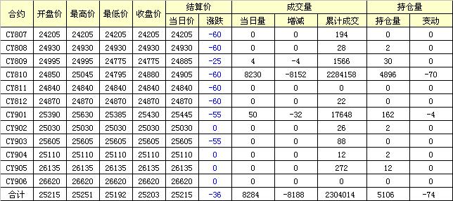 主力CY810合約當日交易走勢