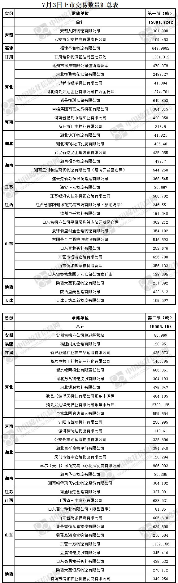 7月3日兩節(jié)共計輪出儲備棉30006.2802噸。第一節(jié)銷售儲備棉15001.7242噸,其中需要倒垛出庫68捆。第二節(jié)銷售儲備棉15005.154噸,其中需要倒垛出庫76捆。