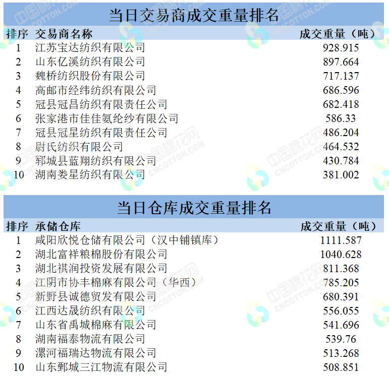 地產(chǎn)棉成交10034.15噸,成交率46%,成交均價14305元/噸,平均加價307元/噸,最高成交價15780元/噸,最低成交價13560元/噸;新疆棉成交8022.166噸,成交率100%,成交均價15183元/噸,平均加價845元/噸,最高成交價16550元/噸,最低成交價14490元/噸。