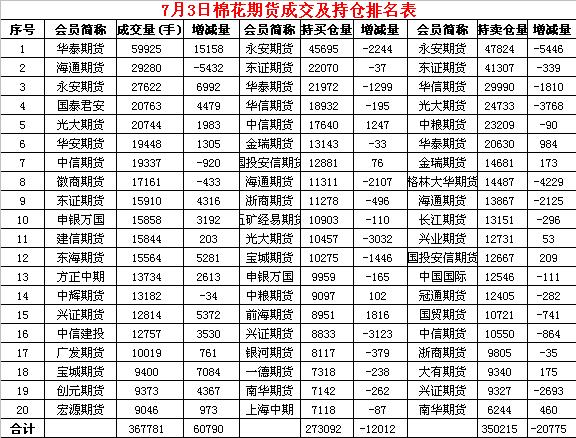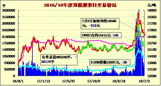 7月3日儲備棉輪出銷售資源30006.8782噸,實際成交14992.7382噸,成交率49.96%。平均成交價格14865元/噸(較前一日上漲170元/噸);折3128價格16261元/噸(較前一日上漲208元/噸)。3月12日至7月3日,儲備棉輪出累計成交143.24萬噸,成交率60.42%。