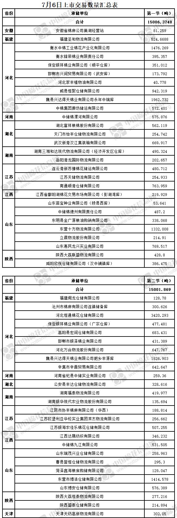 7月6日兩節(jié)共計(jì)輪出儲(chǔ)備棉30008.2438噸。第一節(jié)銷售儲(chǔ)備棉15006.3748噸,其中需要倒垛出庫88捆。第二節(jié)銷售儲(chǔ)備棉15001.869噸,其中需要倒垛出庫69捆。