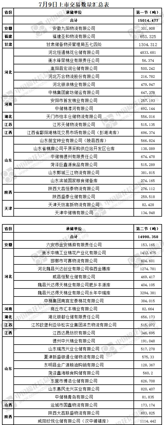 7月9日兩節(jié)共計(jì)輪出儲(chǔ)備棉30004.8350噸。第一節(jié)銷售儲(chǔ)備棉15014.477噸,其中需要倒垛出庫(kù)74捆。第二節(jié)銷售儲(chǔ)備棉14990.358噸,其中需要倒垛出庫(kù)71捆。