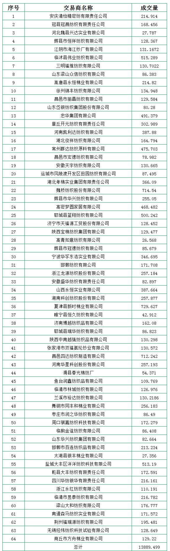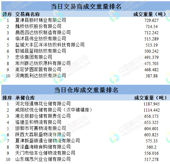 地產(chǎn)棉成交4477.849噸,成交率23%,成交均價(jià)14187元/噸,平均加價(jià)110元/噸,最高成交價(jià)15850元/噸,最低成交價(jià)13600元/噸;新疆棉成交9411.65噸,成交率88%,成交均價(jià)15050元/噸,平均加價(jià)833元/噸,最高成交價(jià)16230元/噸,最低成交價(jià)14190元/噸。