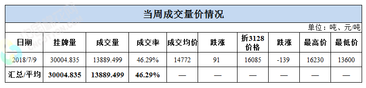 累計(jì)情況:截至7月9日,累計(jì)計(jì)劃出庫249萬噸,累計(jì)出庫成交149.2萬噸,成交率為59.91%;成交最高價(jià)17700元/噸,最低價(jià)12700元/噸。