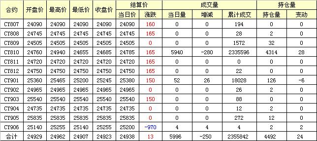 主力CY810合約當(dāng)日交易走勢(shì)