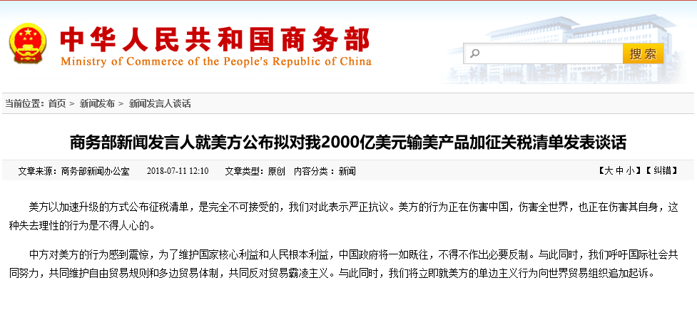 中方對美方的行為感到震驚,為維護國家核心利益和人民根本利益,中國政府將一如既往,不得不作出必要反制。與此同時,我們呼吁國際社會共同努力,共同維護自由貿(mào)易規(guī)則和多邊貿(mào)易體制,共同反對貿(mào)易霸凌主義。與此同時,我們將立即就美方的單邊主義行為向世界貿(mào)易組織追加起訴。