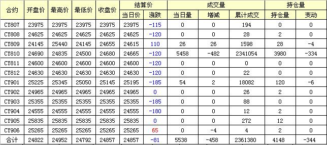 主力CY810合約當日交易走勢