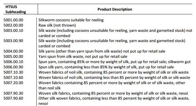 涉及加稅的《HS50章蠶絲》,2017年美國進(jìn)口金額0.23億美元,進(jìn)口同比-28.09%,占美國進(jìn)口比重27.06%,占中國出口比重2.05%。