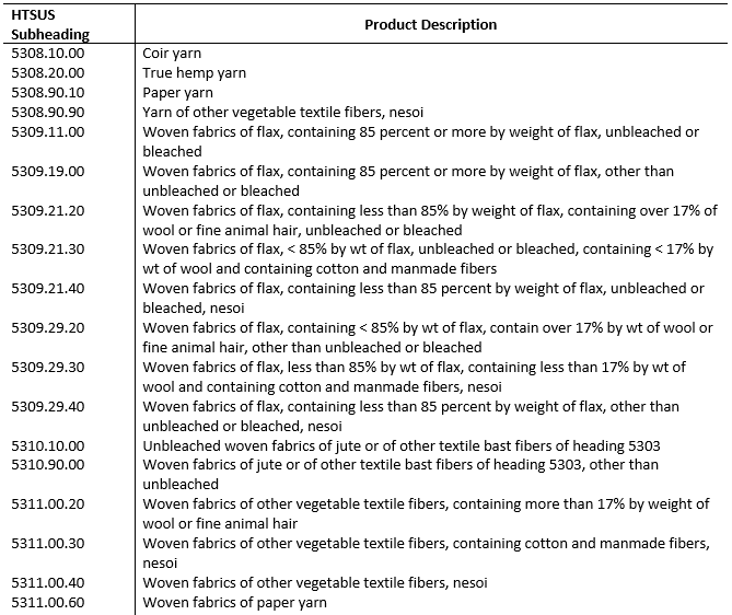 今天我們來分享一下《HS53章其他植物紡織纖維、紙紗線及其機(jī)織物》具體都有哪些產(chǎn)品,見下圖