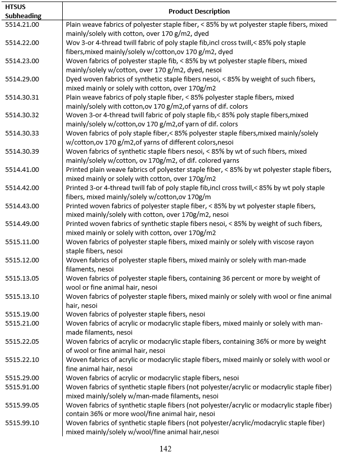 據(jù)美國(guó)OTEXA數(shù)據(jù)統(tǒng)計(jì),2017年中國(guó)紡織品服裝對(duì)美國(guó)出口總額387.4億美元。其中出口服裝270.3億美元,出口紡織及制成品117.1億美元(包括紗線2.2億美元,面料18.4億美元,家用紡織品、產(chǎn)業(yè)用紡織品及其他制成品96.4億美元)。據(jù)中紡聯(lián)國(guó)際貿(mào)易辦公室初步整理,本次加征10%關(guān)稅產(chǎn)品按美方標(biāo)準(zhǔn)超過900個(gè)稅號(hào),覆蓋范圍非常廣泛,涉及HS50-60章幾乎所有產(chǎn)品。包括各種原料(棉、毛、絲、麻和化學(xué)纖維)的所有紗線、面料/織物,以及產(chǎn)業(yè)用紡織品和一部分紡織機(jī)械類產(chǎn)品,涉及的年對(duì)美國(guó)出口金額約40億美元。此次清單不包括服裝類產(chǎn)品和大部分家用紡織品。