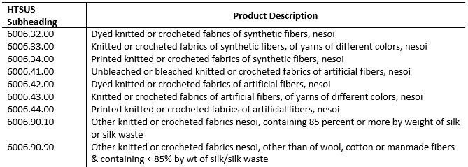 涉及加稅的《HS60章針織物及鉤編織物》,2017年美國(guó)進(jìn)口金額4.71億美元,進(jìn)口同比-10.67%,占美國(guó)進(jìn)口比重44.91%,占中國(guó)出口比重2.85%。