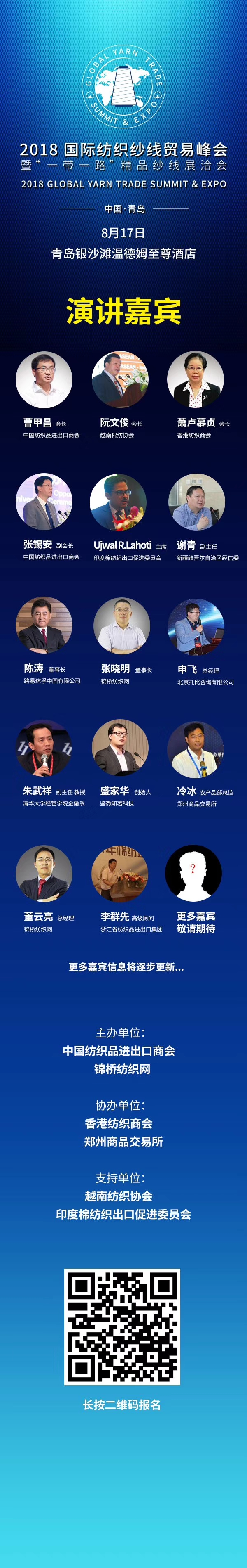 8.17紗線貿(mào)易峰會不只是一次行業(yè)會議,豪華講師團(tuán)覆蓋行業(yè)協(xié)會、政府機(jī)構(gòu)、名企大咖、清華博導(dǎo)、財(cái)經(jīng)專家……