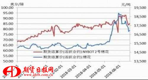 圖1:6月內(nèi)外棉走勢(截止6月25日)