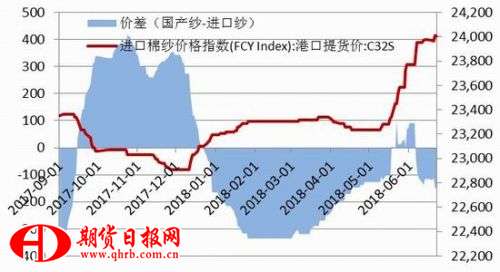 2018年5月我國棉紗線進口約21萬噸,環(huán)比增加約31.25%,同比增加約47.99%。近幾年儲備棉連續(xù)輪出,保證國內(nèi)棉花原料的供應,國內(nèi)棉紗競爭力提升。從目前內(nèi)外棉紗平均價差來看,國內(nèi)棉紗價格低于國外150元/噸左右。中國若如期提高美國棉花進口關稅25%,國際棉價上漲空間將受到抑制,內(nèi)外棉價差或?qū)⒂纱死?,外紗的市場利益將隨之增加,后期棉紗進口量需要密切關注。