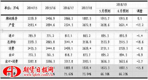 表1:6月USDA全球棉花供需平衡表