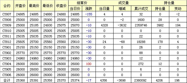 主力CY810合約當(dāng)日交易走勢