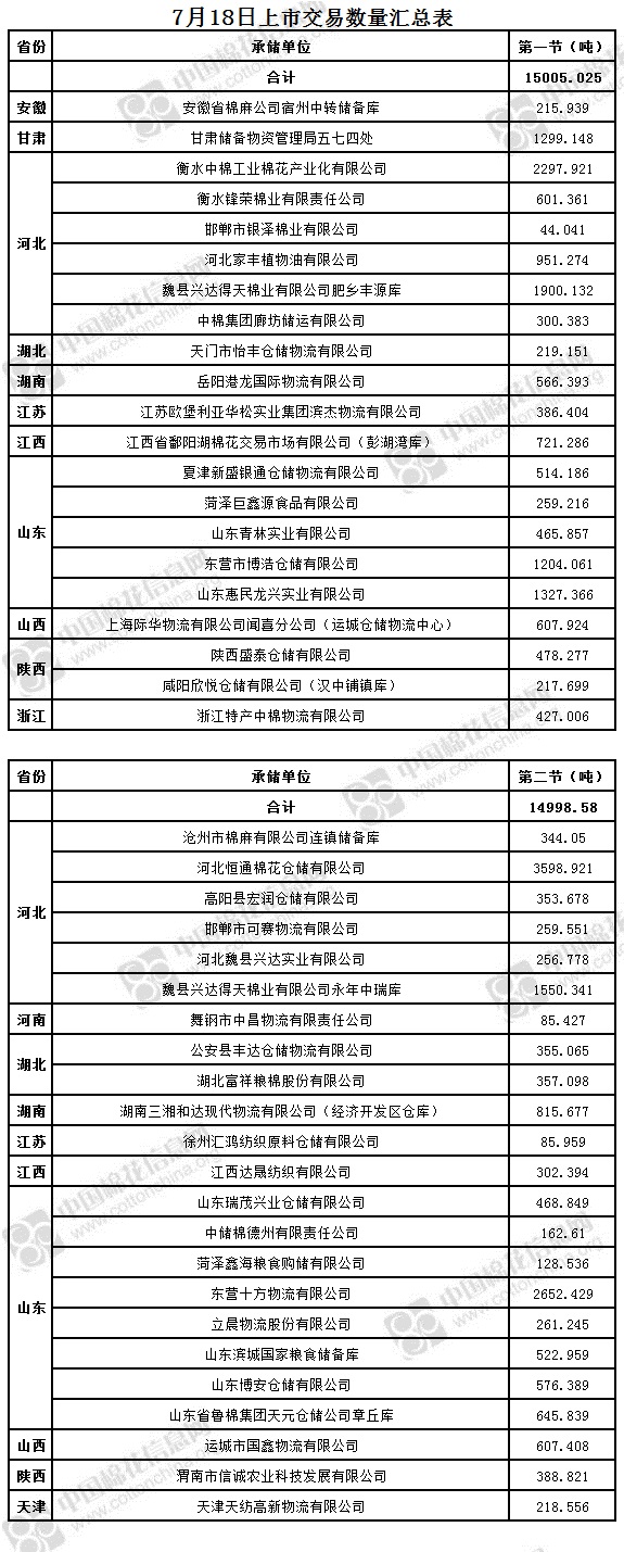 7月18日兩節(jié)共計輪出儲備棉30003.605噸。第一節(jié)銷售儲備棉15005.025噸,其中需要倒垛出庫83捆。第二節(jié)銷售儲備棉14998.580噸,其中需要倒垛出庫67捆。