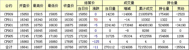 主力CF809合約當(dāng)日交易走勢圖