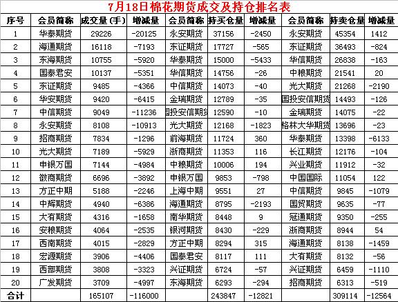 7月18日隔夜鄭棉探低回升,今日早盤下探,午后一度反彈,但是在賣盤打壓下回落,日線形成小陰線。日內(nèi)成交量萎縮,持倉量減少?;久媲闆r:截止到2018年7月17日24點,2017棉花年度全國共有1030家棉花加工企業(yè)按照棉花質(zhì)量檢驗體制改革方案的要求加工棉花并進行公證檢驗,檢驗量達到23370273包,528.6145萬噸。其中新疆796家加工企業(yè),公證檢驗達22106187包,內(nèi)地234家加工企業(yè),公證檢驗達1264086包。