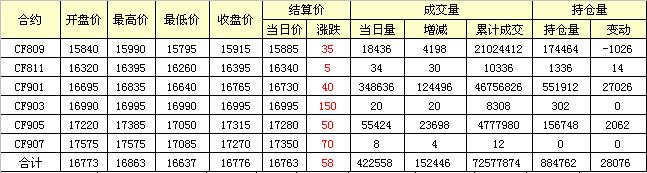 主力CF809合約當(dāng)日交易走勢(shì)圖