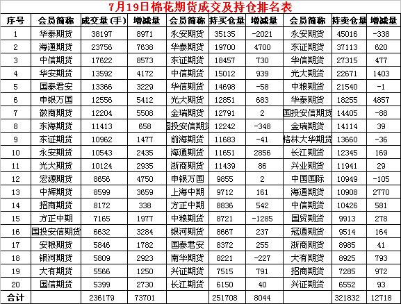 7月19日隔夜鄭棉震蕩盤跌,今日早盤繼續(xù)下探,午后在多頭買盤推動(dòng)下上漲,此后小幅調(diào)整,日線形成小陽(yáng)線。日內(nèi)成交量放大,持倉(cāng)量增加?;久媲闆r:周三西德州大部以晴朗高溫天氣為主,白天最高溫度38℃,預(yù)計(jì)高溫天氣將持續(xù)至本周末。目前急需一場(chǎng)長(zhǎng)時(shí)間降雨來(lái)保障棉株正常生長(zhǎng),但近期無(wú)明顯降雨預(yù)報(bào)。得益于近期的降雨天氣,部分區(qū)域坐果率較高,但未出現(xiàn)降雨天氣的旱地區(qū)域出現(xiàn)落果。德州其他區(qū)域依然持續(xù)高溫天氣,白天最高溫度在32-38℃,加之潮濕度增加,酷熱指數(shù)高位持續(xù)。高溫天氣將促進(jìn)中部和北部區(qū)域棉株生長(zhǎng)。得益于近期高溫天氣,目前德州南部棉鈴成熟迅速,如果晴朗天氣持續(xù),將有助于纖維發(fā)育。