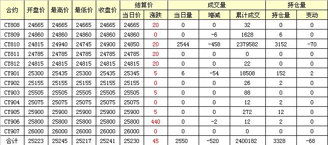 主力CY810合約當日交易走勢