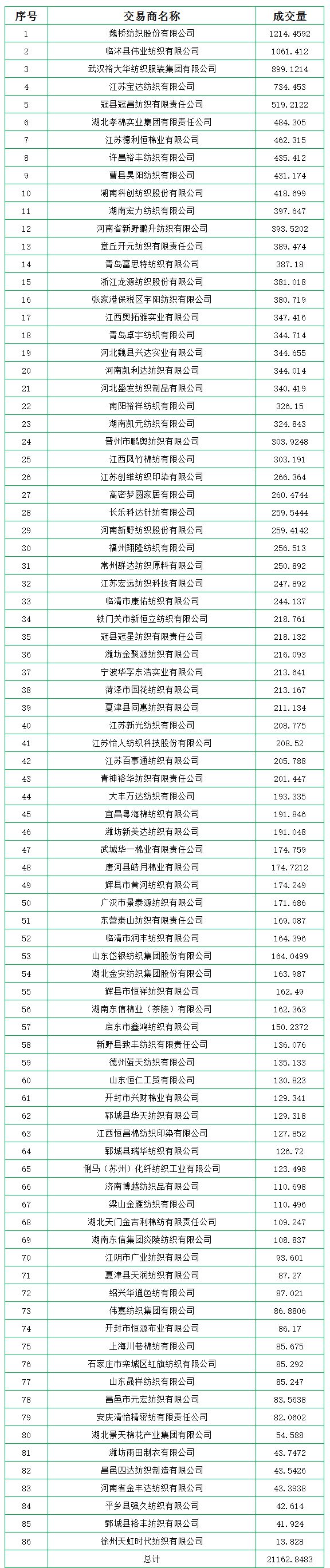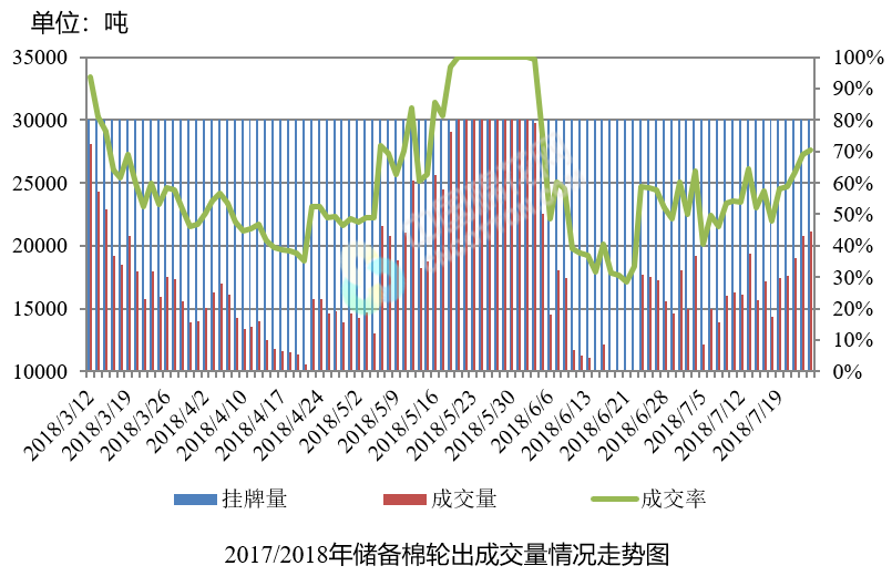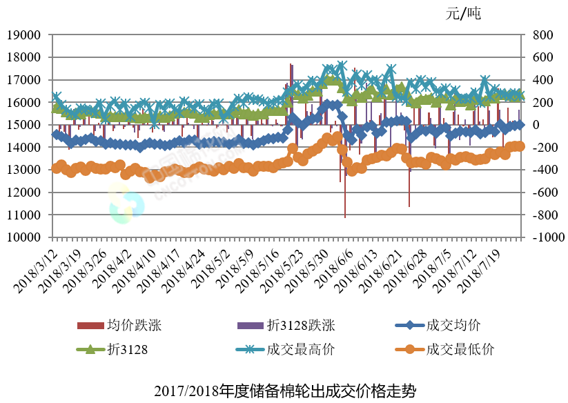 7月25日儲備棉輪出銷售資源30008.2362噸,實際成交21162.8483噸,成交率70.52%。平均成交價格15051元/噸(較前一日上漲12元/噸);折3128價格16445元/噸(較前一日上漲136元/噸)。