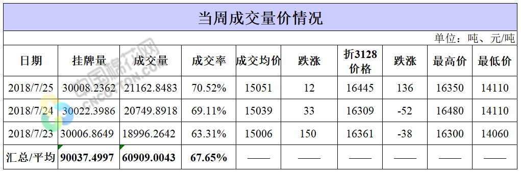 累計情況:截至7月25日,累計計劃出庫285萬噸,累計出庫成交170.2萬噸,成交率為60%;成交最高價17700元/噸,最低價12700元/噸。