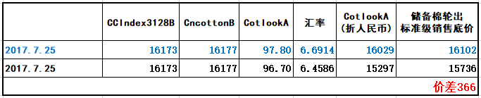 藍(lán)色按照:7月25日新年度CotlookA指數(shù)97.80美分/磅、8月匯率6.6914,測(cè)算出的銷售底價(jià)是16102元/噸,比原有的15736元/噸,上調(diào)366元/噸。(具體測(cè)算結(jié)果以7月30日至8月3日國內(nèi)外現(xiàn)貨價(jià)格基數(shù)為準(zhǔn))