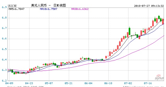 截至7月26日20時(shí),境內(nèi)在岸人民幣兌美元匯率(CNY)徘徊在6.7840附近,境內(nèi)離岸人民幣兌美元匯率(CNH)則觸及6.7878,盤中觸及日內(nèi)低點(diǎn)6.7980,幾乎失守6.80整數(shù)關(guān)口。