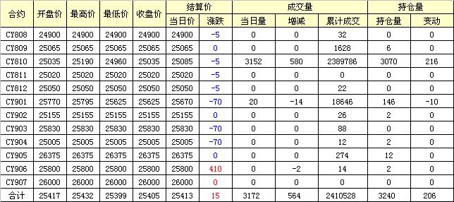 主力CY810合約當(dāng)日交易走勢