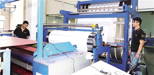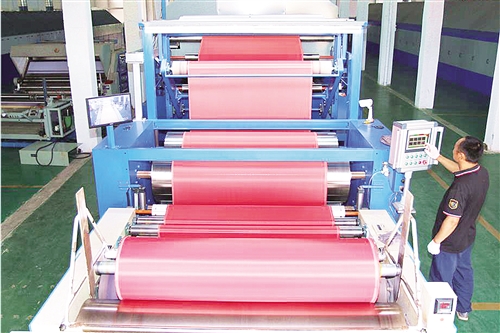 色澤均勻艷麗的紅色布匹源源不斷地生產(chǎn)出來