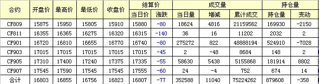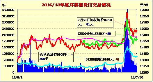 7月30日隔夜鄭棉下試回升,今日早盤探低回升,尾盤小幅收升,日線形成小陽線。日內(nèi)成交量變化不大,持倉量減少。基本面情況:上周四西德州有局部雷暴天氣過境,帶來陣風(fēng)和小到中雨。其中德州狹長地帶局部區(qū)域降雨量較大,有助于緩解土壤干旱減輕供水壓力。但降雨多分布在灌溉區(qū)域,高地和丘陵地區(qū)南部多部旱地區(qū)域仍以干旱為主。上周五該地區(qū)大部多云,溫度適宜,局部區(qū)域可能出現(xiàn)暴風(fēng)雨天氣。上周末周末預(yù)計(jì)升溫,白天最高溫度可能在35℃以上。本周前幾日可能有冷鋒入境,有30-60%的概率出現(xiàn)暴風(fēng)雨天氣,可能帶來少量降雨。德州南部高溫潮濕天氣繼續(xù),預(yù)計(jì)有小概率出現(xiàn)雷陣雨。海灣區(qū)域及格蘭德河流域棉農(nóng)加班加點(diǎn)進(jìn)行采摘,以降低本周惡劣天氣可能帶來的不利影響。