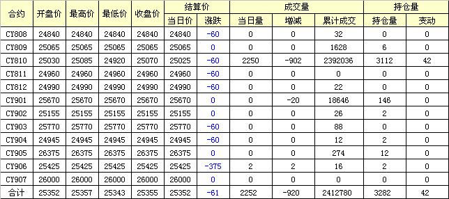 主力CY810合約當(dāng)日交易走勢(shì)