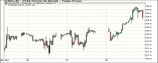 30日紐約期棉市場全面收漲。1812合約結(jié)算價89.20美分,漲86點(diǎn);1903合約結(jié)算價88.94美分,漲80點(diǎn);1905合約結(jié)算價88.82美分,漲68點(diǎn)。12月合約平穩(wěn)開盤,開盤后受支撐交易重心持續(xù)走高,整個上半場交易呈上行態(tài)勢,后因獲利平倉市場短暫小幅回落,但迅速調(diào)頭向上,至當(dāng)日高點(diǎn)89.76美分處賣盤入場,交易重心承壓走低,后在89.4-89.6美分區(qū)間窄幅震蕩運(yùn)行,至收盤時處因缺乏有力支撐,市場小幅回落,最終以漲勢收盤。外圍美元指數(shù)下跌,大豆和小麥期貨上漲。