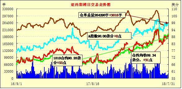 31日紐約期棉市場漲勢延續(xù)。1812合約結(jié)算價(jià)89.59美分,漲39點(diǎn);1903合約結(jié)算價(jià)89.50美分,漲56點(diǎn);1905合約結(jié)算價(jià)89.39美分,漲57點(diǎn)。其他合約上漲36-106點(diǎn)不等。當(dāng)日12月合約小幅低開,上半場交易維持窄幅震蕩趨勢,后賣盤入場,市場承壓下行,至當(dāng)日低點(diǎn)88.90美分處買盤發(fā)力,交易重心受支撐走高,最終以漲勢收盤。根據(jù)美國農(nóng)業(yè)部(USDA)最新數(shù)據(jù)來看,美棉生長狀況較前一周有所改善。分析指出,可能受美股及玉米大豆等農(nóng)產(chǎn)品期貨漲勢帶動,期棉維持上漲態(tài)勢。外圍美元指數(shù)上漲,玉米、大豆和小麥期貨上漲。美股收漲。