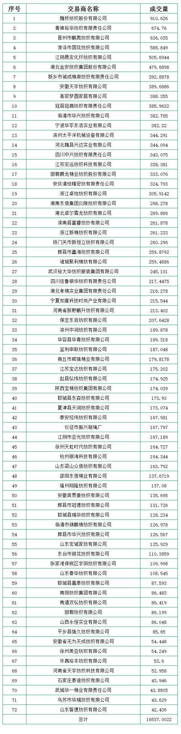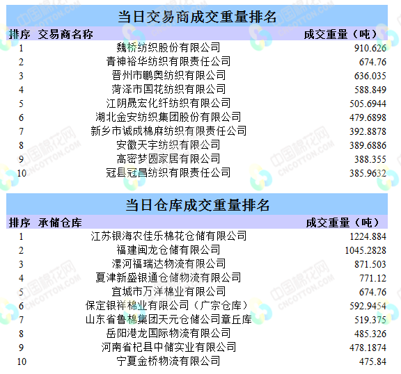 地產(chǎn)棉成交6036.1394噸,成交率30.9%,成交均價(jià)14610元/噸,平均加價(jià)416元/噸,最高成交價(jià)15550元/噸,最低成交價(jià)14110元/噸。新疆棉成交10500.8628噸,成交率100%,成交均價(jià)15113元/噸,平均加價(jià)682元/噸,最高成交價(jià)16350元/噸,最低成交價(jià)14340元/噸。