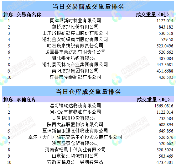 地產(chǎn)棉成交5319.505噸,成交率27.76%,成交均價14481元/噸,平均加價310元/噸,最高成交價15350元/噸,最低成交價13440元/噸。新疆棉成交9665.4631噸,成交率89.2%,成交均價15137元/噸,平均加價588元/噸,最高成交價16350元/噸,最低成交價14220元/噸。