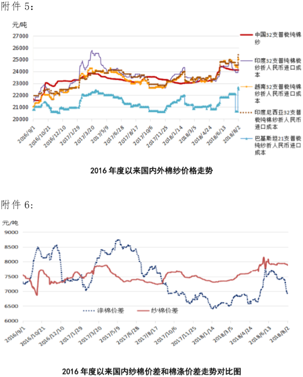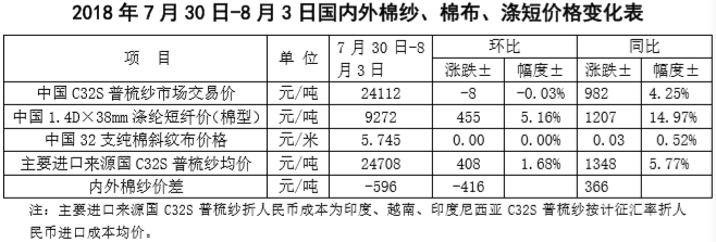 附件2:2018年7月30日-8月3日國(guó)內(nèi)外棉紗價(jià)格變化表