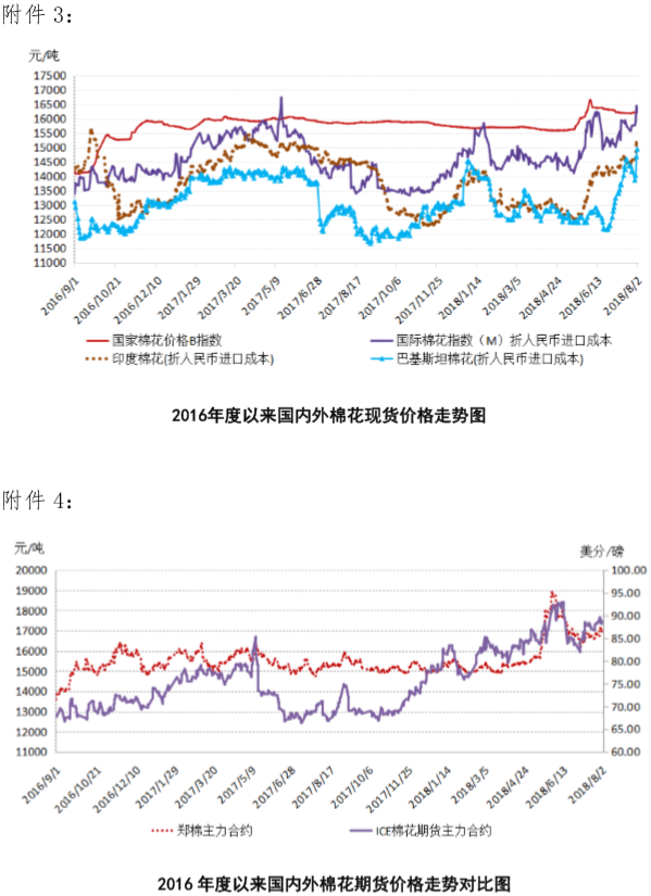 附件1:2018年7月30日-8月3日國(guó)內(nèi)外棉花價(jià)格變化表