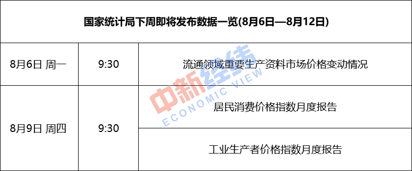 國(guó)家統(tǒng)計(jì)局下周即將發(fā)布數(shù)據(jù)一覽(8月6日—8月12日)。中新經(jīng)緯閆淑鑫制圖