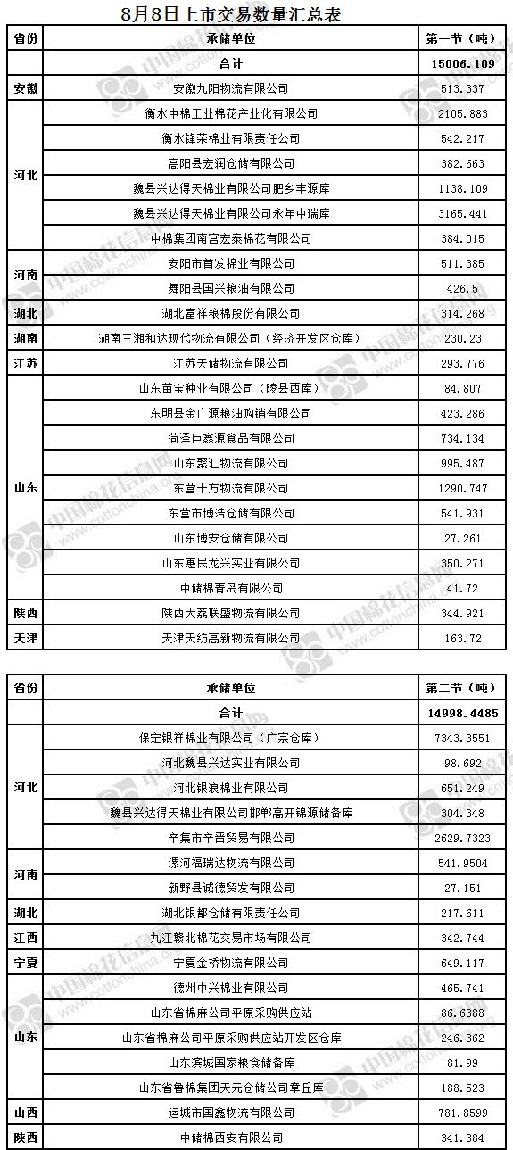 4、漯河福瑞達(dá)物流有限公司、山東省棉麻公司平原采購(gòu)供應(yīng)站、山東省棉麻公司平原采購(gòu)供應(yīng)站開發(fā)區(qū)倉(cāng)庫(kù)、運(yùn)城市國(guó)鑫物流有限公司(含部分包檢)、辛集市辛?xí)x貿(mào)易有限公司、保定銀祥棉業(yè)有限公司(廣宗倉(cāng)庫(kù))為實(shí)施按批抽樣方式檢驗(yàn)的承儲(chǔ)庫(kù),由于掛牌較為集中,請(qǐng)買方妥善協(xié)商安排出庫(kù)。