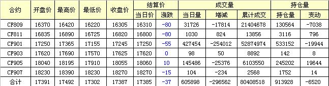 主力CF809合約當(dāng)日交易走勢(shì)圖