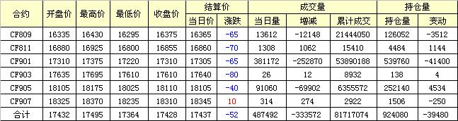 主力CF809合約當(dāng)日交易走勢圖