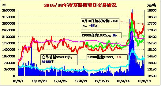 8月10日隔夜鄭棉下探,今日盤中在空頭回補(bǔ)推動下上行,午后回落,日線形成星線。日內(nèi)成交量萎縮,持倉量減少?;久媲闆r:周三西德州部分多云,白天最高溫度32℃。當(dāng)日晚些時候預(yù)計有冷鋒過境,晚間可能出現(xiàn)局部雷暴天氣。本周預(yù)計仍有40-60%的概率出現(xiàn)暴風(fēng)雨天氣,未來幾天可能有小到中雨。至本周周末預(yù)計氣溫偏低,白天最高溫度可能降至27℃,將使備受高溫煎熬的棉株得以喘息。周二夜間德州南部局部出現(xiàn)少量降雨,周三有小概率出現(xiàn)陣雨天氣,戶外作業(yè)因此受阻。目前海灣區(qū)域以及格蘭德河流域尚未出現(xiàn)明顯降雨,采摘工作因此得以順利進(jìn)行。籽棉待加工量增加,軋花廠開始延長作業(yè)時間。