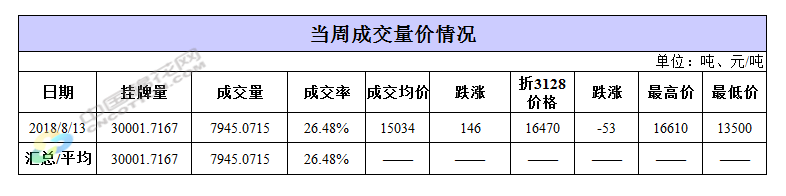 累計情況:截至8月13日,累計計劃出庫324.1萬噸,累計出庫成交188.32萬噸,成交率為58.11%;成交最高價17700元/噸,最低價12700元/噸。