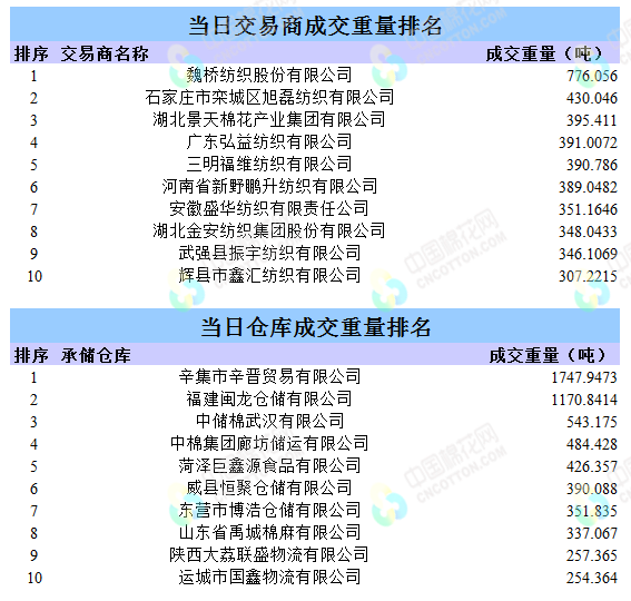 地產(chǎn)棉成交2274.522噸,成交率9.7%,成交均價14512元/噸,平均加價137元/噸,最高成交價16120元/噸,最低成交價13500元/噸。新疆棉成交5670.5495噸,成交率86.2%,成交均價15244元/噸,平均加價413元/噸,最高成交價16610元/噸,最低成交價14250元/噸。